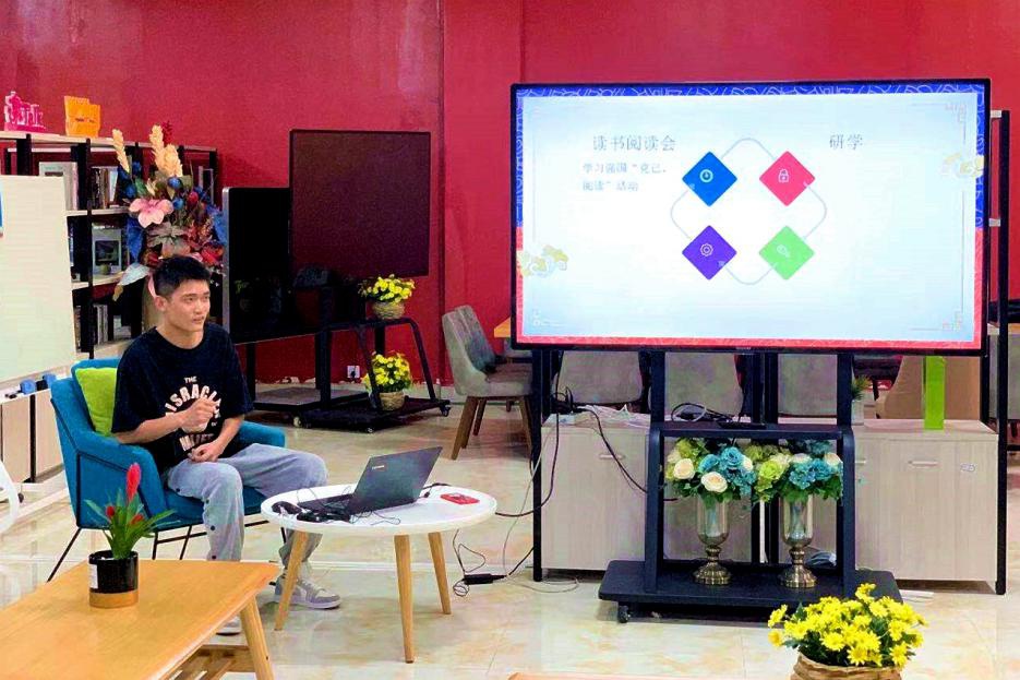 解忧学社设有六个部门,为增加部门成员间的互动,在各部长介绍了部门成员及工作职责后,接下来是部门小组讨论环节,在导师助理王盼的组织调动下,以读书阅读会、研学活动、养老院探望活动等话题展开小组讨论,讨论过程中员工们各抒己见,妙语连珠,踊跃发表自己的观点,一个个点子鱼贯而出,活动氛围热烈。