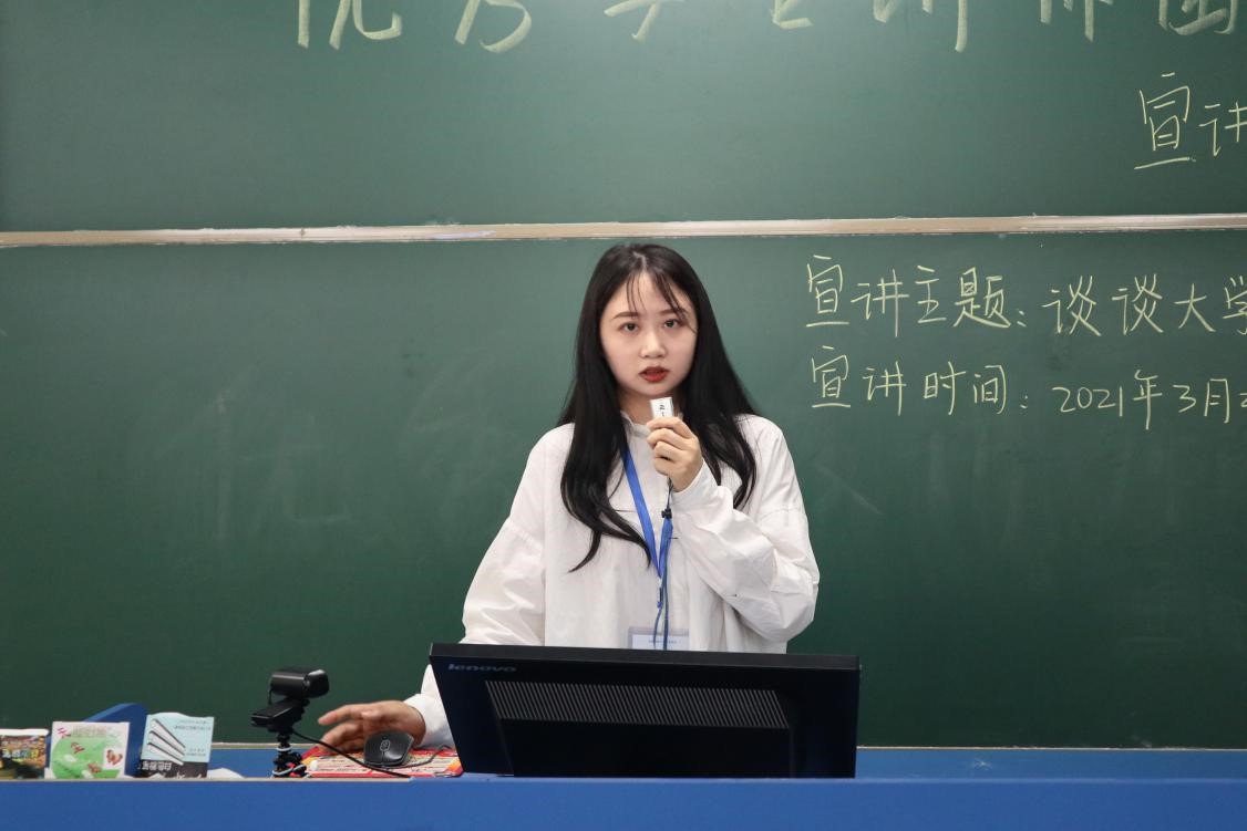 为帮助公司员工走出大学迷茫期,明确走进大学的目标,公司于3月31日下午4时在书知楼2106教室开展优秀员工代表宣讲会。邮轮1801班的员工余勤作为优秀员工讲师团代表担任本次宣讲会的宣讲人,公司员工准时到场,积极参与本次宣讲会。
