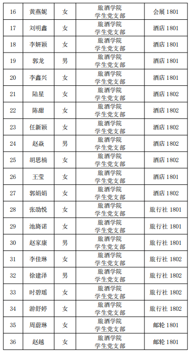 为了进一步增强发展党员工作的透明度,严格组织发展工作程序,防止不正之风,确保发展新党员的质量,拟发展下列同志为中共预备党员,特此公示。