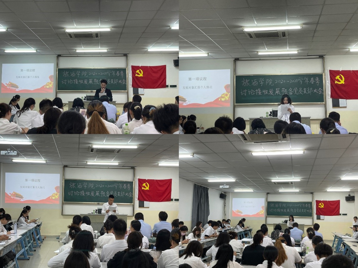 会议分为六项议程进行,首先,何璐等55名发展对象汇报了对党的认识、入党动机、本人履历、家庭成员和主要社会关系情况、现实表现,以及需向党组织说明的其他问题。接着,各入党介绍人分别介绍何璐等55名发展对象的有关情况并表明对其同意入党的意见。