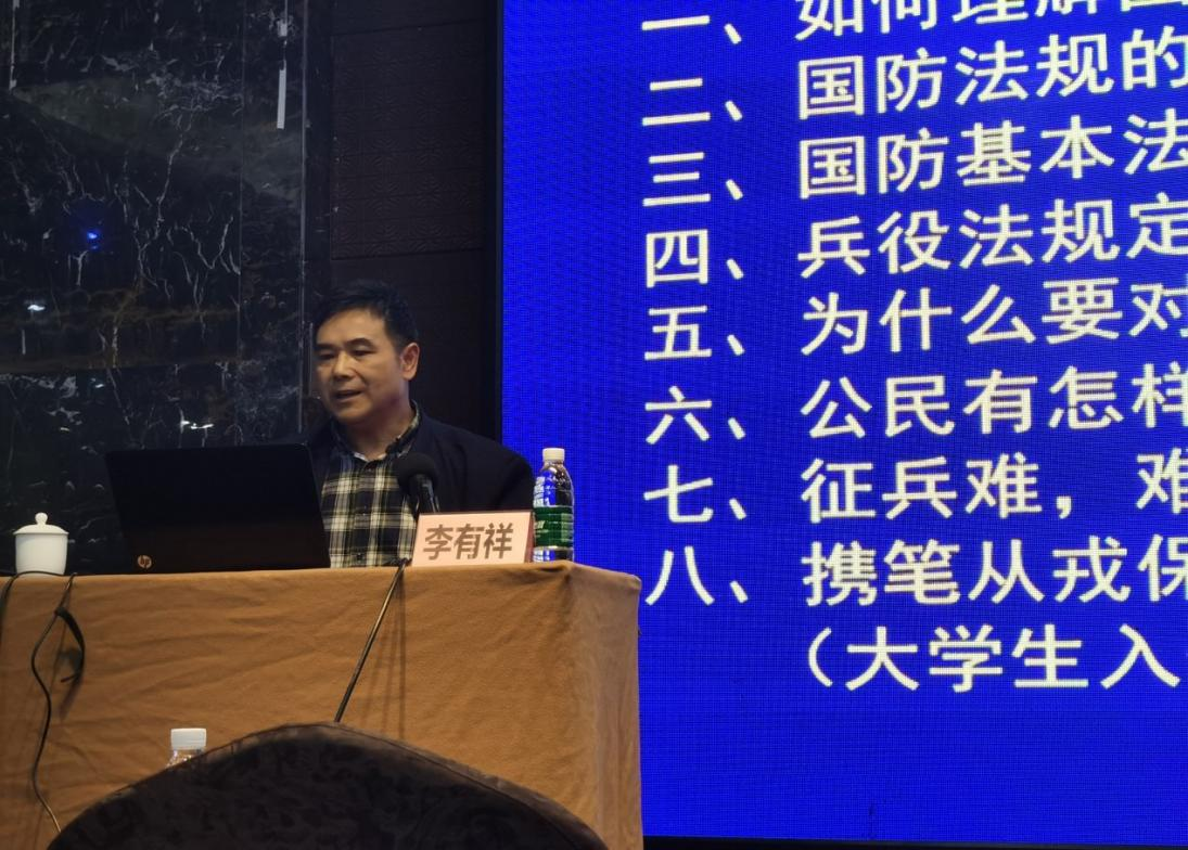 李有祥从军事理论课教学设计与授课艺术以及武装力量两方面进行了深入分析和讲解。他指出,一堂好的国防教育课必须有其独特风格和授课艺术,必须能让员工“一见钟情”,并结合大量实例总结性地提出国防教育课应具备“一心二义,说三道四,五光十色,百炼千锤”等特色。