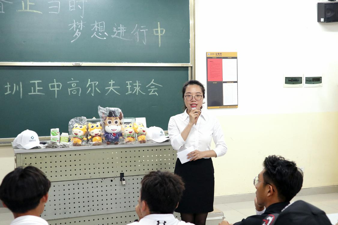 宣讲伊始,培训经理李颖君介绍了正中高尔夫球会的基本概况,紧接着主讲人刘旭利用PPT展示介绍了深圳的繁华美丽,正中高尔夫球会坐落于深圳东部,是一家纯会员制的都市休闲商务球会,是由加拿大著名设计师尼尔·哈沃斯担纲设计的36洞国际锦标级球场。正中高尔夫球会是一家充满了年轻活力,同时不断在注入新鲜血液的公司,非常关注实习生与员工的生活工作。它为员工提供了十分良好的食住环境,公司内也设有篮球场、操场等娱乐放松场所。深圳是一个极具包容性的城市,正中高尔夫球会在提供优质工作生活环境同时也密切关注员工心理状况,工作上严格要求,生活中给予鼓励帮助。