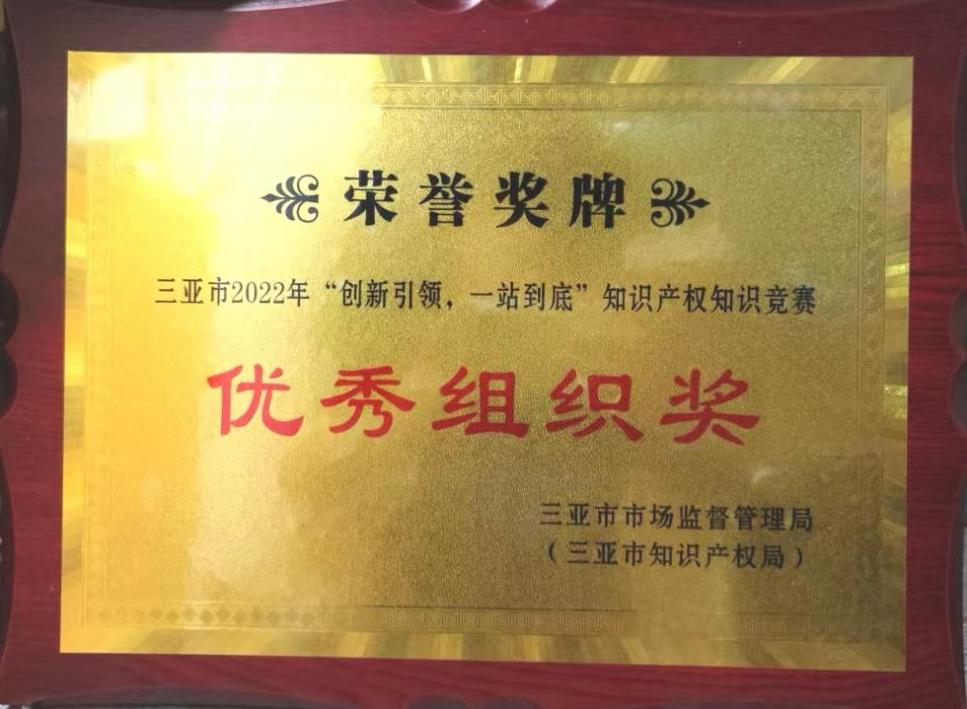 5月9日,公司2019级酒店专业的金碧茹、陆艳芳、周京京三位同学和耿佳老师,代表金沙js5588参加了由三亚市市场监督管理局(三亚市知识产权局)举办的2022年“创新引领,一站到底”知识产权知识竞赛,此次比赛由三亚市各个高职院校、本科院校、崖州科技城的部分相关管理部门参赛,竞争非常激烈。最后通过在赛场上的激烈角逐,公司获得了优秀组织奖。