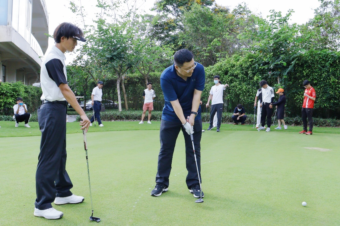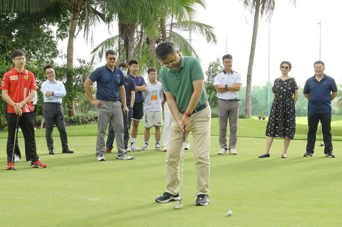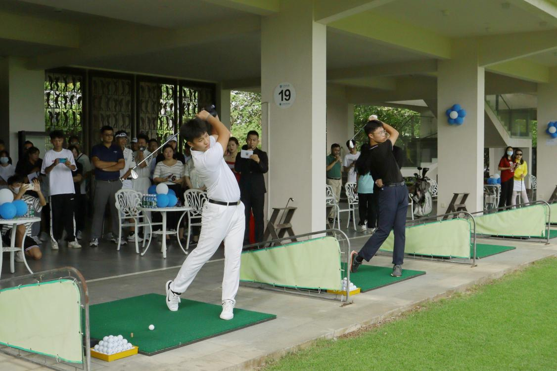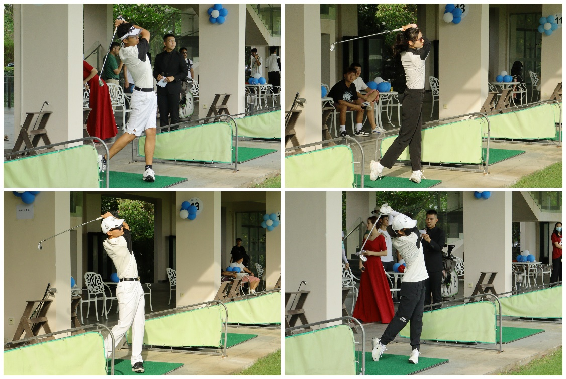 本次开幕式的亮点更是公司特色的高尔夫开球仪式。本次开球仪式由公司高尔夫班级的员工代表参与,员工代表们有条不絮,一气呵成,用力挥杆,将球击飞,飞出的球在天空划出了一道优美的弧线。此刻,这球不仅代表着公司旅游嘉年华活动正式开始,更代表老师们对公司员工的热切期望。高尔夫专业的员工们在展现球技的同时还与老师们开展了比赛,不仅增加了员工与老师的互动,还缩短了公司员工与老师之间的距离。美好的时光总是短暂,本次旅游嘉年华开幕式结束后,公司师生们共同合影留念。