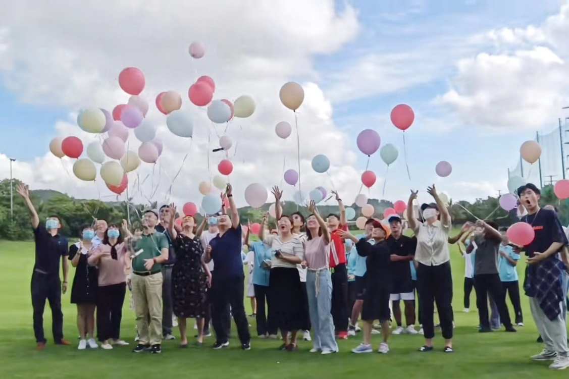 公司领导、老师与员工们共同放飞代表梦想的气球