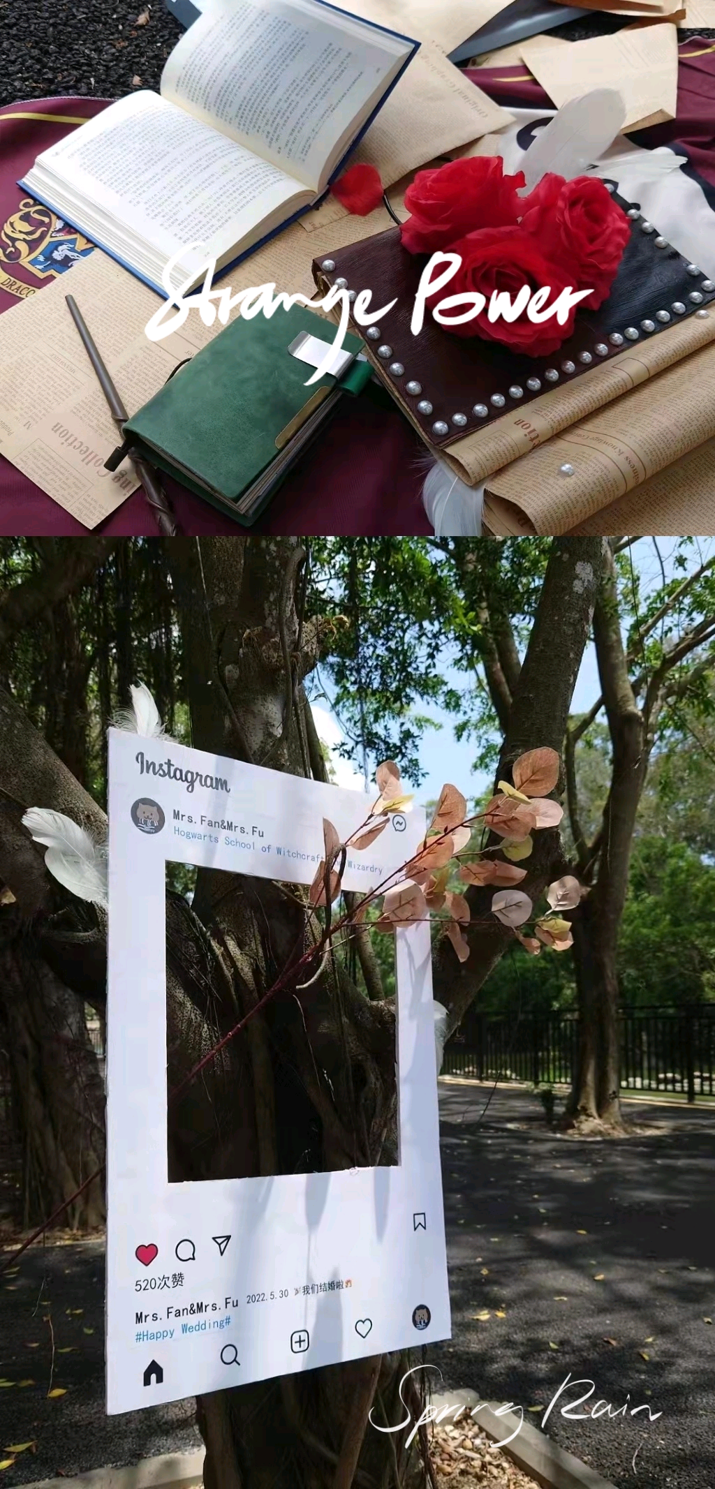 会展1901班第三小组的同学们组织了一场哈利波特主题婚礼。借着爱情的魔力共同来分享一段与众不同的婚礼这是一场关于魔法和爱情的故事,为了实现新娘的魔法梦,同学们创造了一个《哈利波特》的平行世界,在这个充满魔法的幻境里俩位新娘签订魔法契约。从此,她们的婚姻受到魔法的保护。忠于爱,守护爱,当她们念出守护神咒Expecto Patronum,一切可怕的事物都将远离。