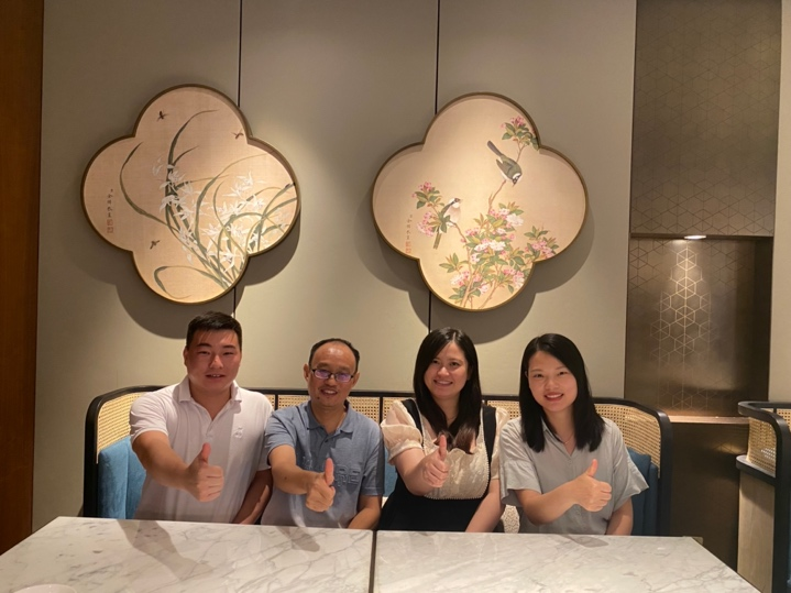 雷春老师与会展毕业生交流(从左-右分别是 罗振华、雷春、黄敏敏、陈彩虹)