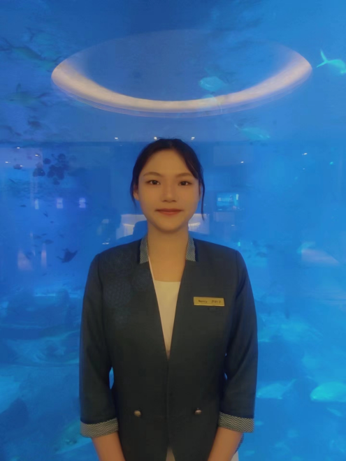 李泳钰同学:我所在的岗位是亚特兰蒂斯前厅部的前台接待,刚开始来的时候部门分配师父带着我学习Opera系统,一边站在前台辅助师父接待客人,一边师父用零碎时间告诉我系统各个功能。在这边学边上岗的过程中,我逐渐发现自己有很多不足需要学习和成长的地方,尤其是电脑技能和英语口头表达能力。另外当我接待客人为客人解答疑难问题,获得客人的笑容与认可时,我内心深处感到无比的欣喜。有一种成就感一直激励着我不断努力学习,希望接下来的日子里能够学得更多,成长得更多,感谢有这个实习机会磨炼自己,加油!