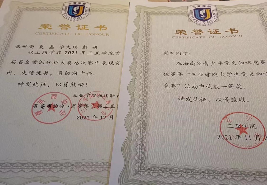 大学除了自身所学的课程,还有许多课余时间,为了不荒废时间,我会参加一些比赛挑战自我,比如党史知识竞赛,名企案例分析,还有正在进程的互联网+等活动,有成功也有失败,但是在参与比赛的过程中,我所获得的不仅仅是奖章,更能够弥补专业知识短板和学习到项目负责人的领导能力等。犹记当初彻夜不眠背党史,每次开会讨论完掐着点赶回宿舍。这般忙碌成为了我大学一学年中最难以忘怀,最为珍贵的回忆,在比赛中交到志同道合的朋友,团队团结和睦,各司其职。友情和学业的双重收获是这一年来最宝贵的财富。