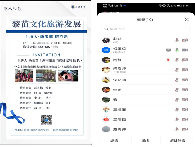 为积极推动团队暑期的科研工作,8月31日下午,公司旅游高质量发展团队在线上召开了《海南国家公园周边黎苗文化旅游发展研究》课题沙龙研讨会。本次研讨会由团队负责人海南旅游消费研究院经理杨玉英研究员主持,并邀请了海南省发改委赵霄伟副研究员、旅游与酒店管理公司经理柴勇副教授参与研讨。