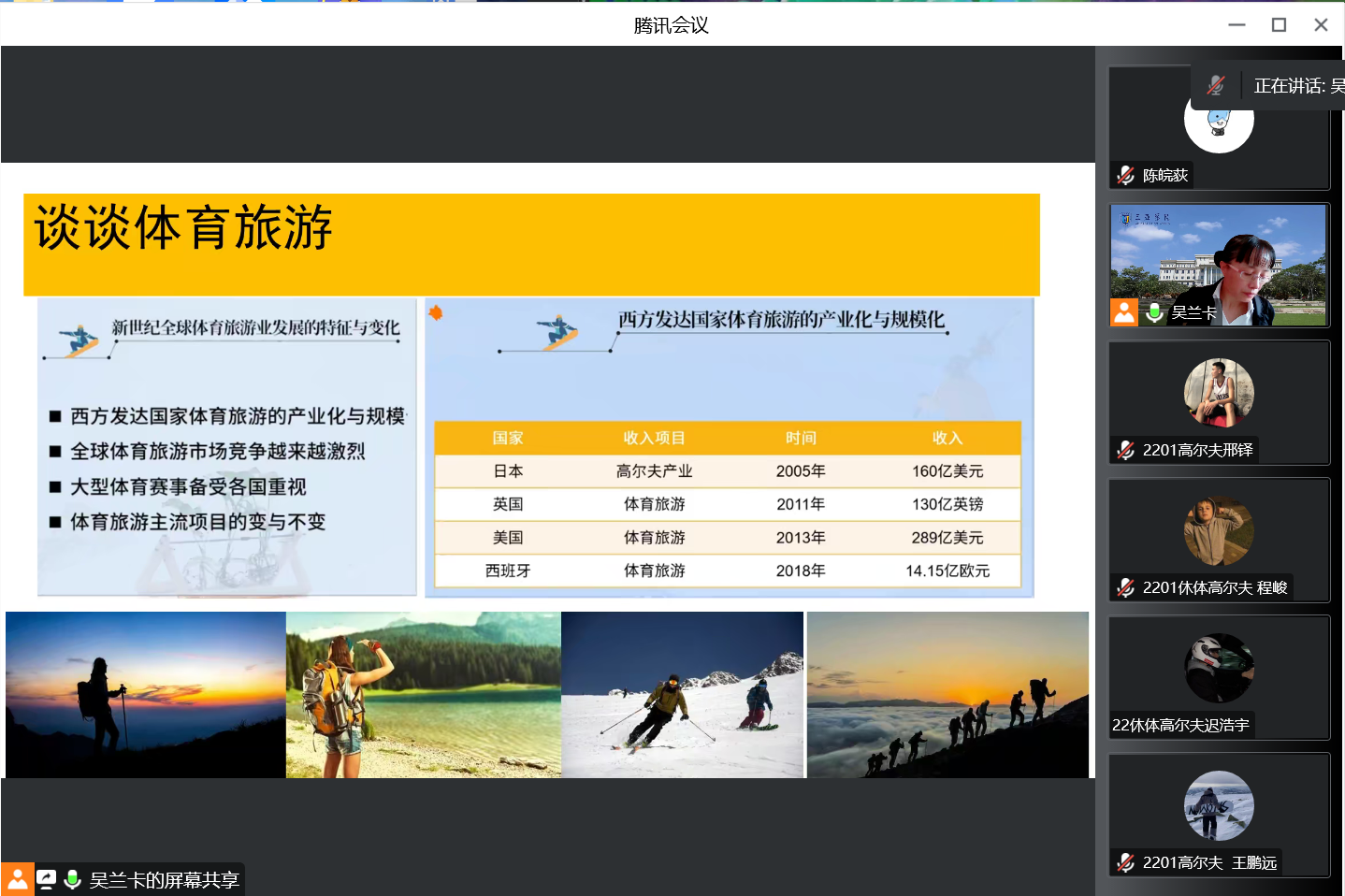 随后吴兰卡老师谈到全球体育旅游业发展的特征及变化,西方发达国家体育旅游的产业化与规模化较好;全球体育旅游市场竞争越来越激烈;大型体育赛事备受各国重视;体育旅游主流项目的变化;这些因素同样推动着国内高尔夫行业的发展。