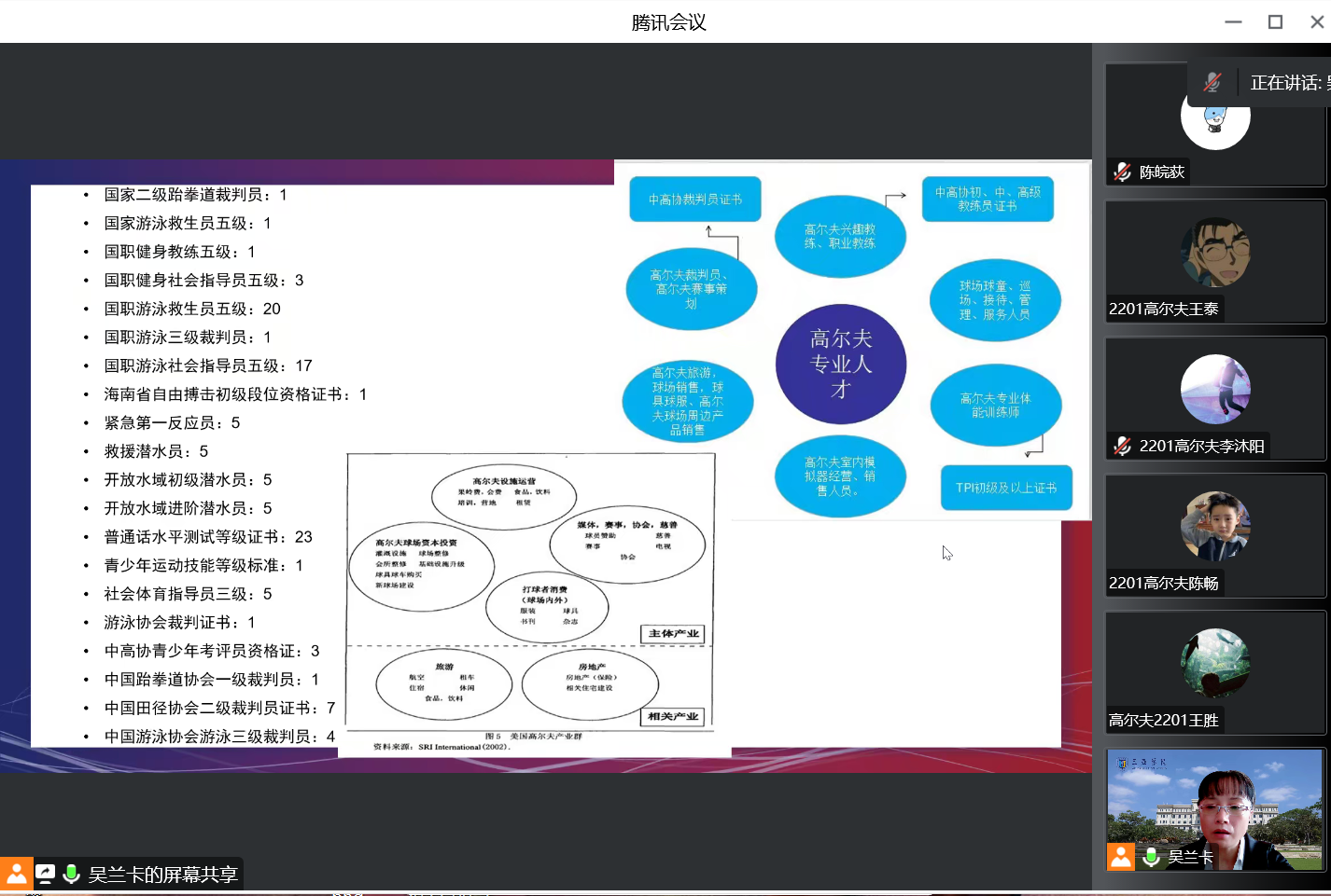 花自向阳开,人要向前看。寒窗苦读十年后,2022级的新生们终于如愿以偿来到大学。在进入大学后的目标需要重新去思考,无论是短期的目标还是长期的目标,都需要根据所学专业去制定和规划,为了让2022级新生快速了解到高尔夫专业的整体情况,公司高尔夫专业负责人吴兰卡于9月21日上午8时在腾讯会议为新生进行专业入门指导,2022级高尔夫专业新生积极参加。