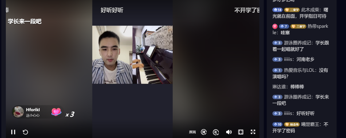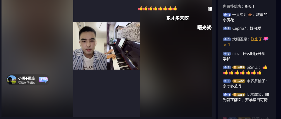 新生夸赞公司员工会文艺部赵杨溪带来的钢琴独奏