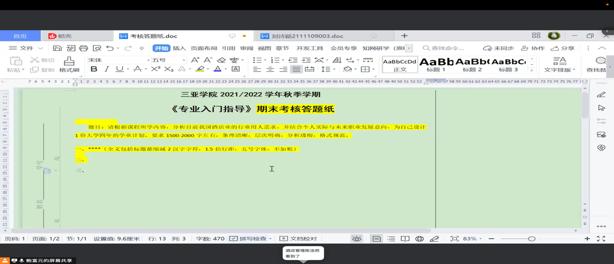 一切功课都应该仔细分成阶段,务使先学的能为后学的扫清道路,给予解释。为了能让22级酒店管理新生更好地了解关于作业考核的要求,以及更好地了解专业导师,公司于9月30日上午9点在腾讯会议由公司鲍富元老师为22级酒店管理新生讲解课程考核,公司22级酒店管理新生积极参加。
