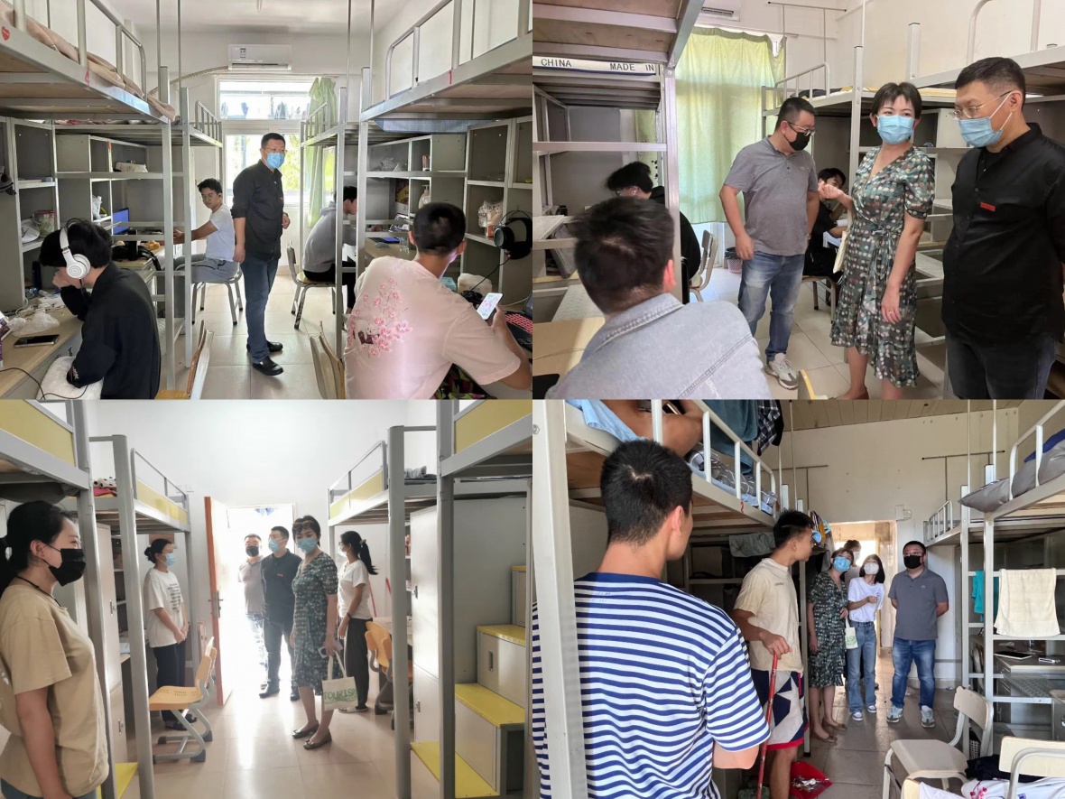2022年11月6日,金沙js5588经理柴勇、党总支副书记吴吟秋、副经理亓元、副经理郜宣以及全体思想导师深入员工宿舍楼走访慰问返校员工,与同学们进行了亲切的交流和交谈,了解员工网格化期间困难,并实地察看员工宿舍公共设施、环境卫生和安全用电情况。