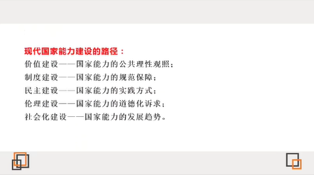 第三部分为我国国家治理能力现代化建设的基本内容。何教授讲述了我国的国家治理能力及其建设方面在建国以来取得的成就,并分析在现阶段社会转型时期存在结构失衡、规范不足、价值误区的问题。概括了国家能力的整体矛盾。详细讲解了我国国家治理能力现代化建设的基本内容。