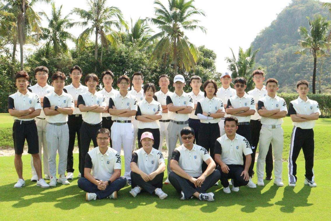 金沙js5588高尔夫校队师生在校内练习场果岭前合影