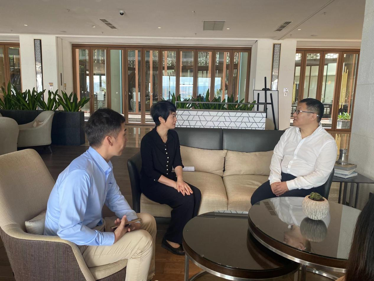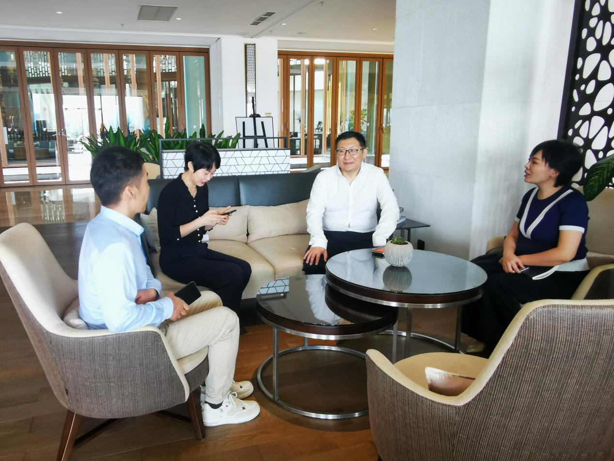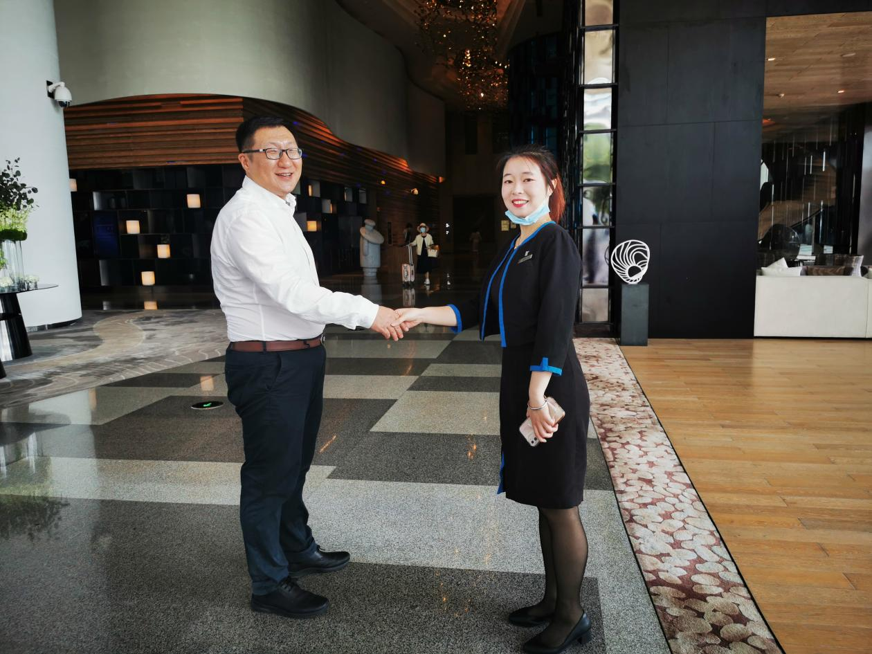 柴勇经理一行实地走访了大东海JW万豪和傲途格酒店,受人力资源唐总监Tina邀约,通过查看酒店布局、交谈毕业员工的方式,详细了解酒店经营、岗位资源、人才需求等情况,并与总经理沃尔夫Ulf Pauschardt进行了座谈。