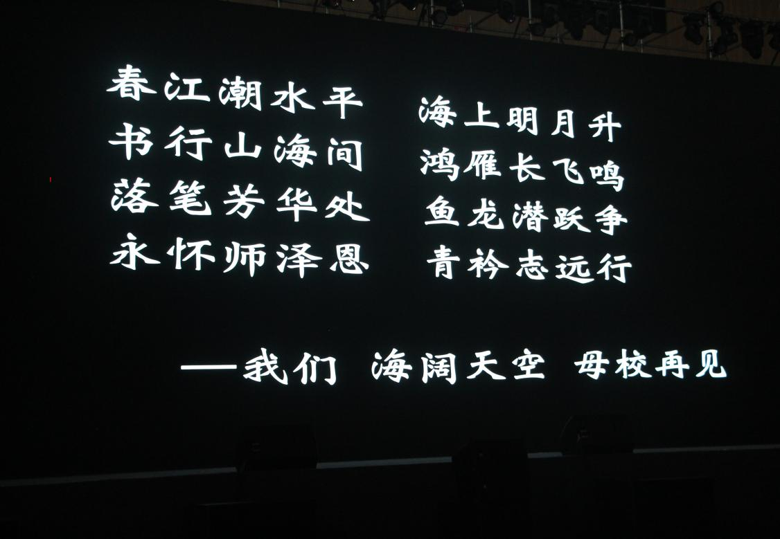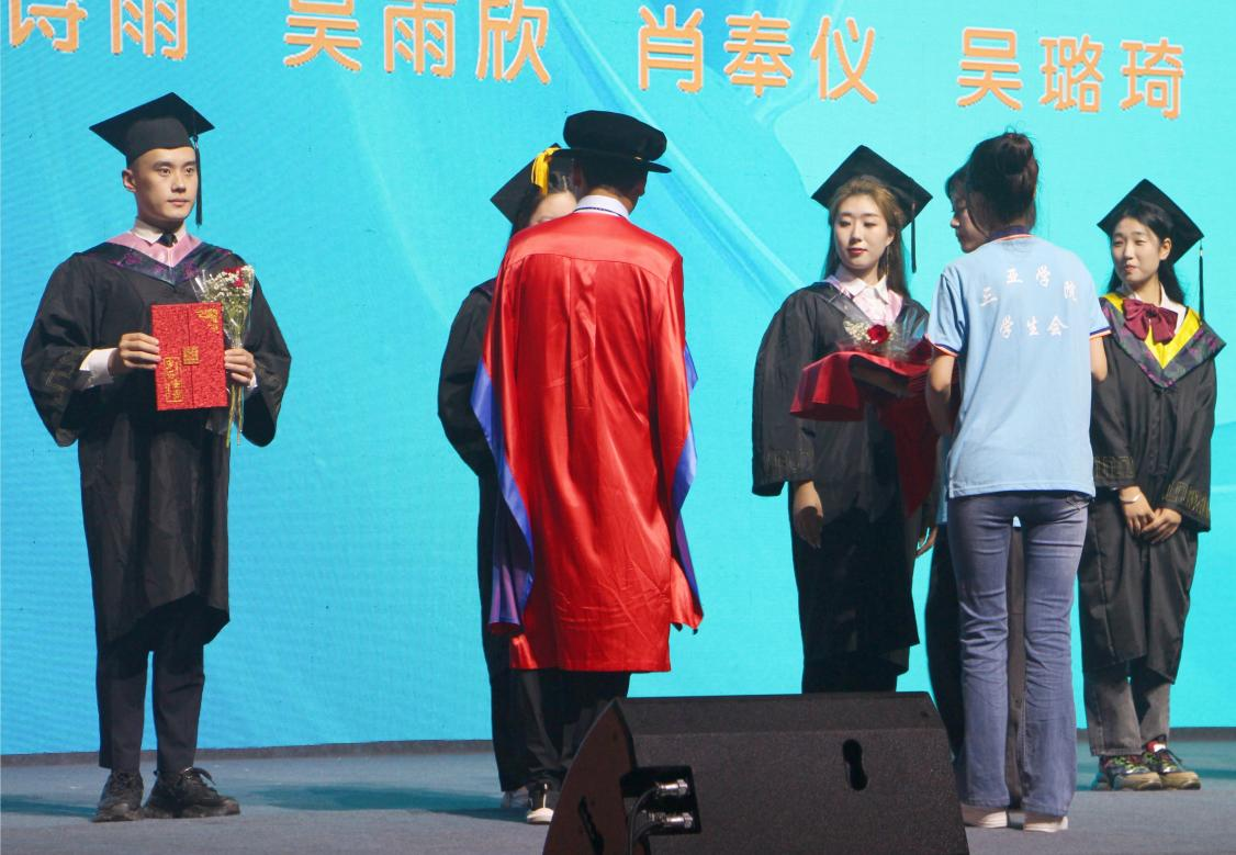 接下来是音乐公司的学子们带来的古典舞蹈表演《碇步桥》,轻快的步伐,欢乐的音乐是对毕业生们最好的祝福。表演结束后是对优秀毕业生党员、优秀员工干部、考研毕业生代表、书福奖学金及学科竞赛获奖毕业生们进行表彰。花样年华,日月同辉,他们用辛勤装扮出绚烂的青春色彩;莘莘学子,意气风发,他们用努力谱写着辉煌的人生旅程。拼搏进取的毕业生们在青春的舞台上展现出最美的姿态。