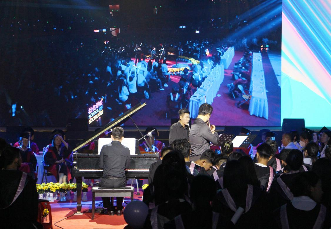 此次毕业典礼在合唱歌曲表演《感恩的心》和《成功是欢乐的海洋》中圆满结束,熟悉的音乐又一次被唱响,各公司的老师代表们伴随着音乐走向舞台,一起向毕业生们挥手告别,希望毕业生们顺利开启新的人生旅程。