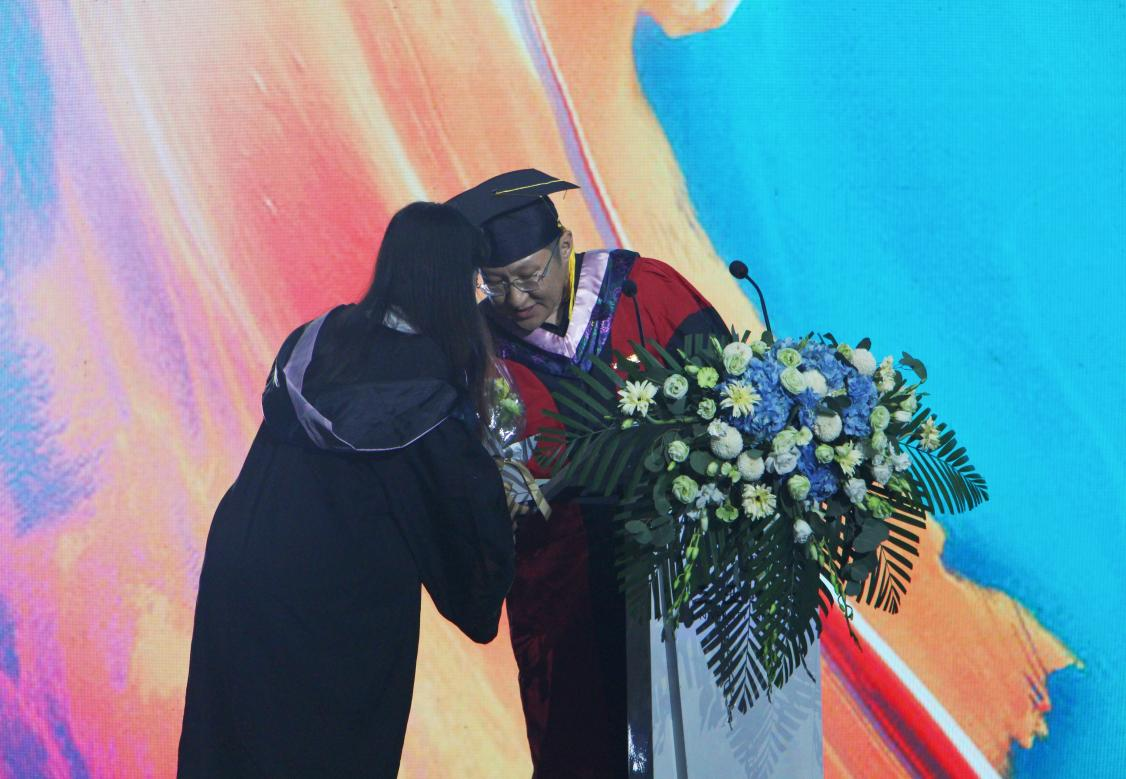 金沙js5588旅游与酒店管理公司经理柴勇教授作为教师代表发言并表示,毕业后即将踏上新的人生征程,前方充满了希望和挑战、困难和挫折,希望毕业生们在走入社会后仍能保持热爱和初心。在离开校园后也仍然需要保持学习的热情,勤奋进取,成为更好的自己。祝愿2023届毕业生们在拥抱未来的路上,坚定不移地追光前行。