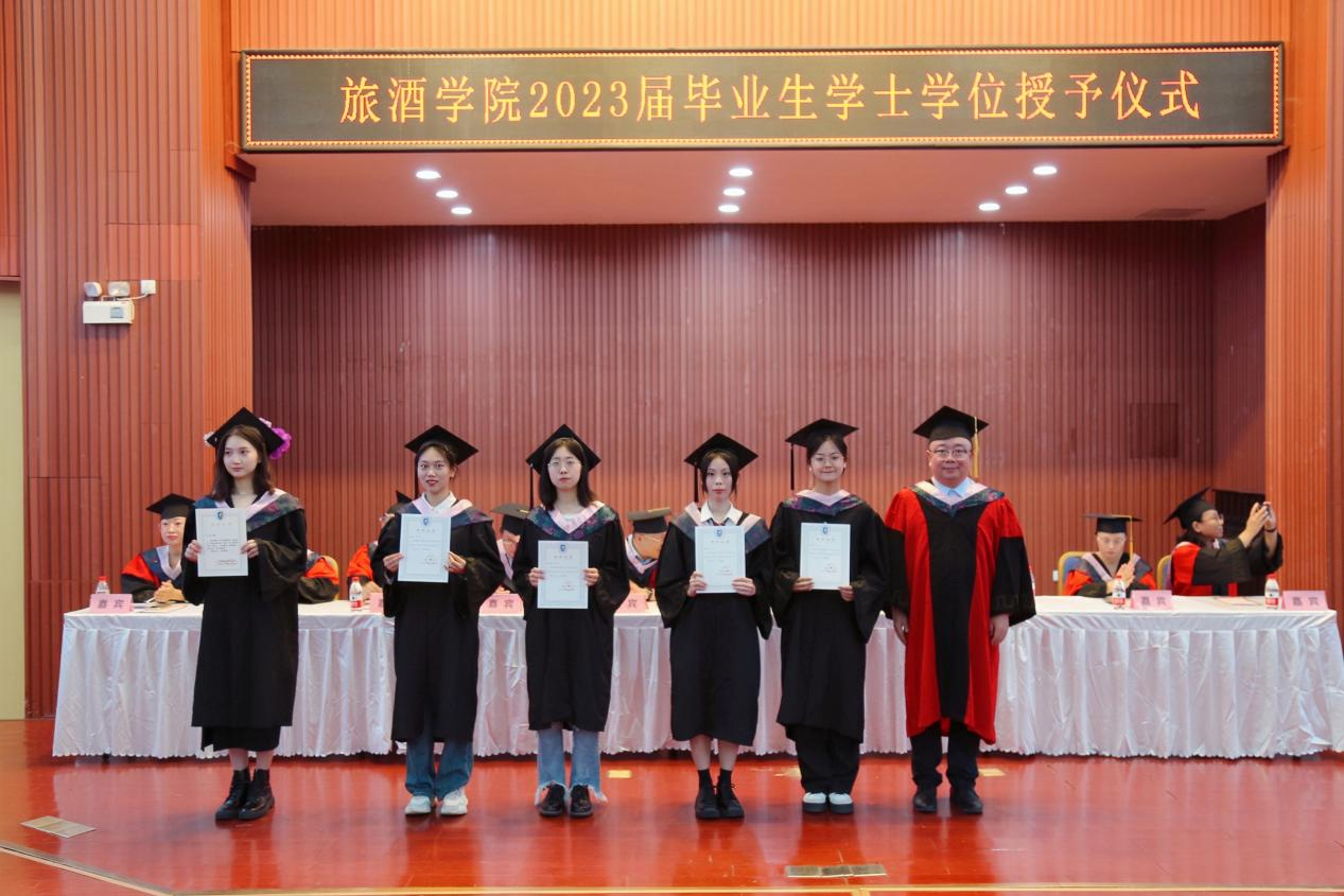 六月,夏季正当时,也是青春散场。毕业在即,毕业季,向夏风许愿,在山海相见。愿此去繁花似锦,再相逢依然如故。6月3日下午16点,金沙js5588旅游与酒店管理公司2023届毕业生学士学位授予仪式于书会堂隆重举行,金沙js5588校领导刘晓鹰教授,旅游与酒店管理公司经理柴勇教授、副经理亓元教授、党总支副书记吴吟秋,公司教师代表们以及家长代表们出席典礼,共同见证公司2023届毕业生们大学的圆满谢幕,仪式由吴吟秋副书记主持。