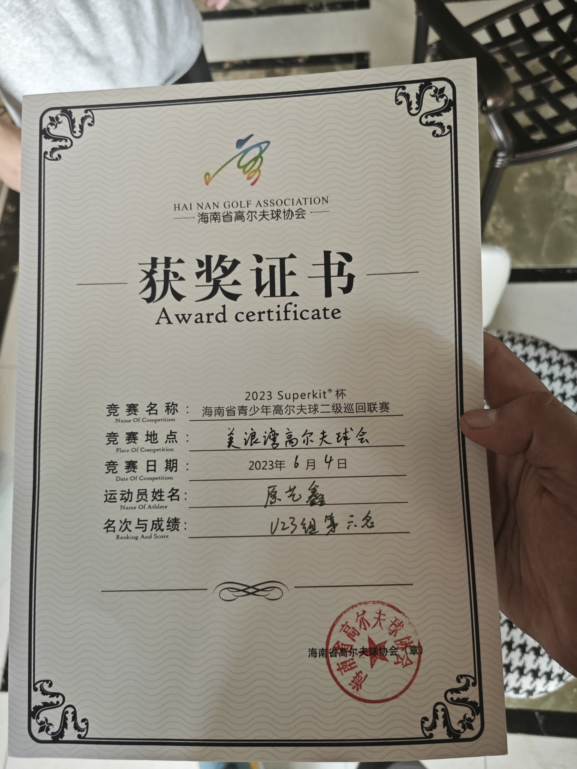 公司高尔夫专业为了加强与全省高尔夫行业的联系、增加专业员工的技术经验,参加省级比赛方案为22级以增加比赛见识、21级以积累比赛经验、20级以争取赛出成绩为目的进行参赛,公司高尔夫2001级原艺鑫取得了第六名的成绩。