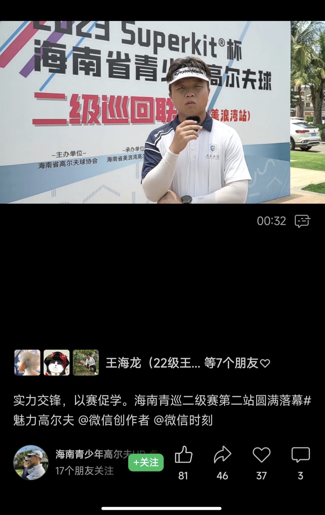2023年6月4日,趁荔枝正红,球场飘香,由海南省高尔夫协会主办的2023海南省青巡二级联赛第二站如约挥杆美浪湾,再燃这个夏天的高球之火。本次赛事迎来了海南高校的实力对决,球员们奋力拼搏,展现公司风采。