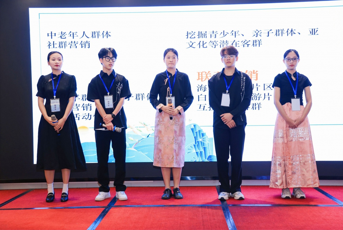 决赛队伍由获得初赛特等奖的12支队伍组成,评委由海南省旅游和文化广电体育厅副厅长李仲广、海南省旅游投资发展有限公司副总经理吴媛菲、中国旅游协会旅游教育分会秘书长谷慧敏、海南大学旅游公司经理郭强等多名专家组成。决赛中,评委从PPT展示和问答两个环节进行打分,参赛小组“各显神通”。PPT展示环节,有的小组用舞台剧的方式让听众眼前一亮,有的小组结合“元宇宙”设计的旅游产品炫酷无比;在问答环节,有的小组自信并条理清晰回答专家的提问,有的小组对于国家政策和自贸港的发展有着深刻的见解。