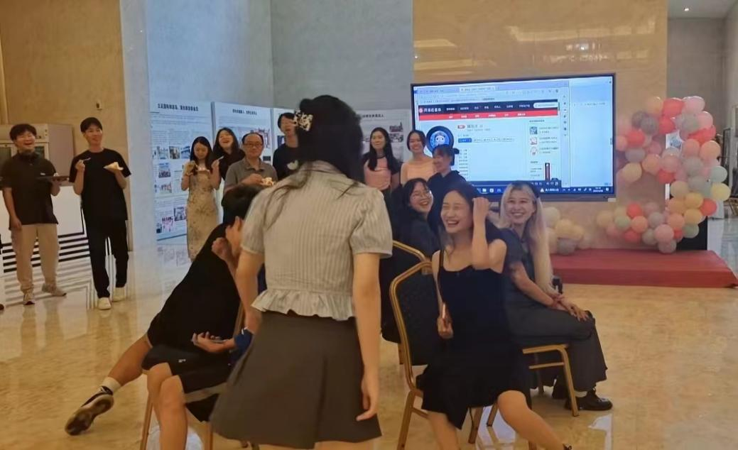 在主持人的宣布下,仪式正式开始,本次宴会结课仪式暨会展2001班三周年共分为两个分会场,一个是由小组带领的包饺子团队,另一个是其他小组带领的游戏区。员工们和到场老师们一起参与游戏:抢凳子、爱的抱抱、你说我猜等等。