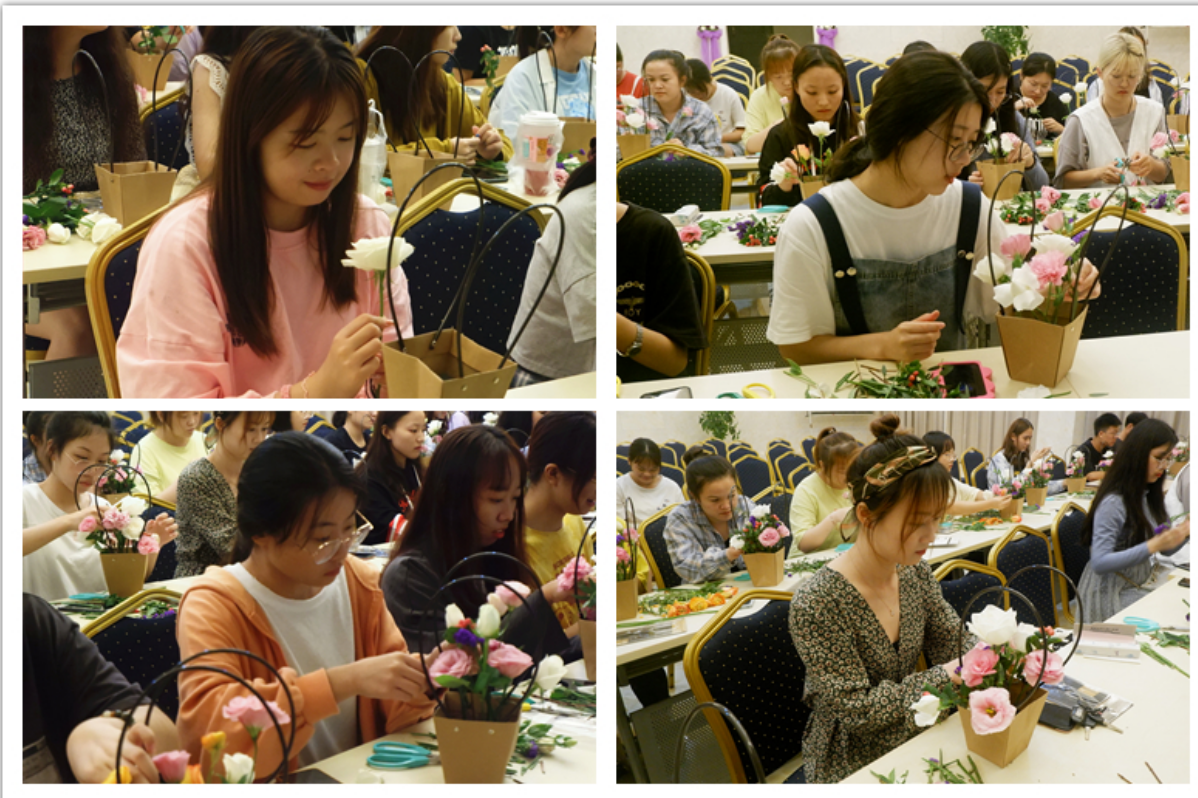 花艺社团是一支主攻手工制作、学习插花技艺的专业社团。该社团隶属校级员工社团。通过社团活动,培养员工的专业能力,增强理论与实践的结合,提高员工对各类花艺的鉴赏水平和动手能力,集社会性,科学性,艺术性为一体,通过各种形式的交流来展现老员工的良好精神风貌。