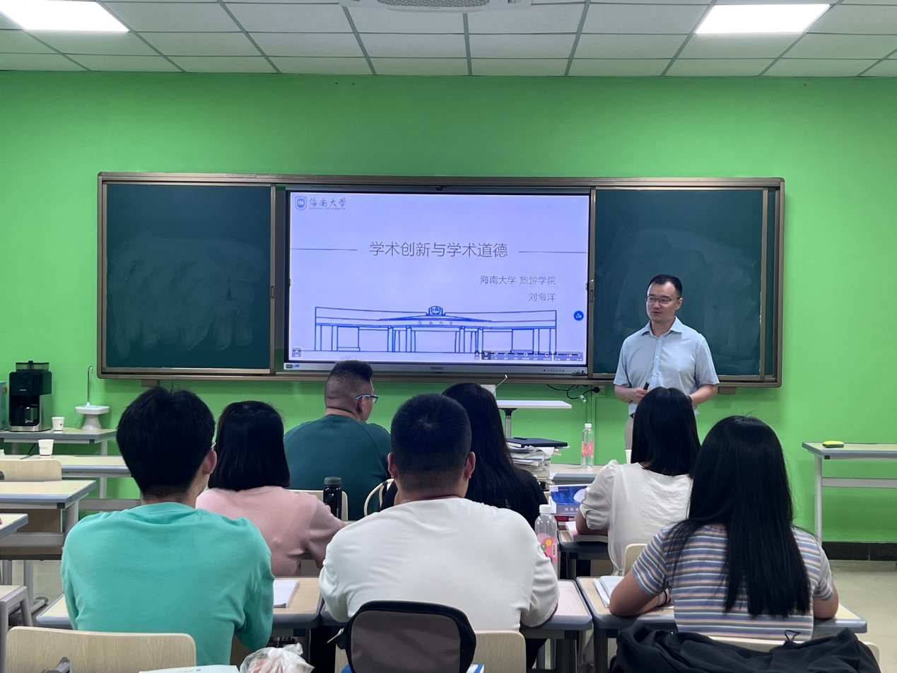 近日,MTA学术创新和学术道德讲座在书新3号楼205教室成功举办。此次讲座由MTA办公室主办,邀请海南大学资深教授、博士生导师刘海洋老师主讲,旨在提高MTA员工的学术研究水平和学术道德素养,落实学术道德规范,推进科学研究和学术交流。本次活动由MTA导师李佳老师主持,旅游与酒店管理公司亓元经理、学术委员会主任杨玉英教授亲临讲座现场,并与刘海洋教授进行深度的沟通和交流。