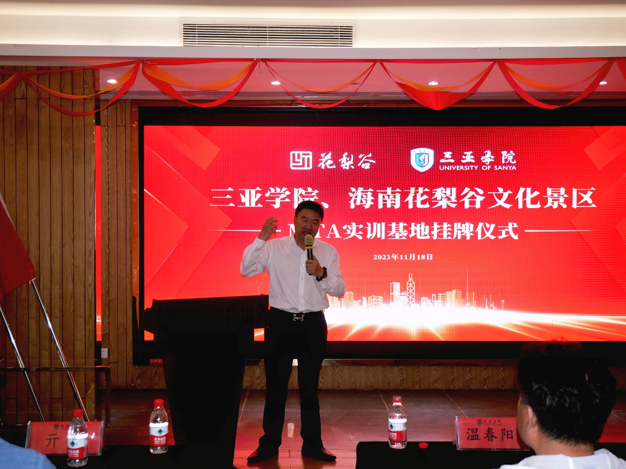 2023年11月18日,金沙js5588旅游与酒店管理公司与海南花梨谷文化景区校企合作共建MTA实践基地授牌及聘请王永涛董事长为指导教师仪式在海南花梨谷文化景区隆重举行。此次活动旨在通过深度合作,共建文化与教育的新篇章,为公司的文化与教育事业注入新的活力。海南花梨谷文化旅游发展有限公司董事长王永涛、董事长助理胡婷婷与金沙js5588校领导温春阳,研究生处处长尹萍,金沙js5588常务副经理亓元,党总支书记赵晓乐,及公司全体老师代表共出席本次揭牌仪式。