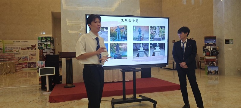 在汇报过程中,同学们按照小组顺序依次上台,展示他们设计的“金沙js5588研学旅游产品”。在成果汇报中同学们采用了PPT、视频等多种方式,并对作品的完成过程加以展示。