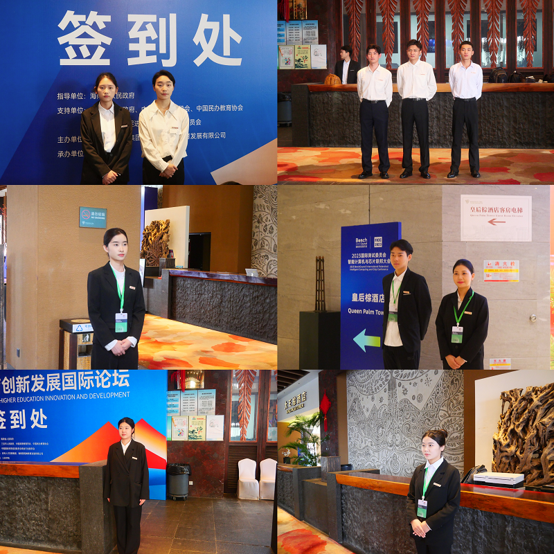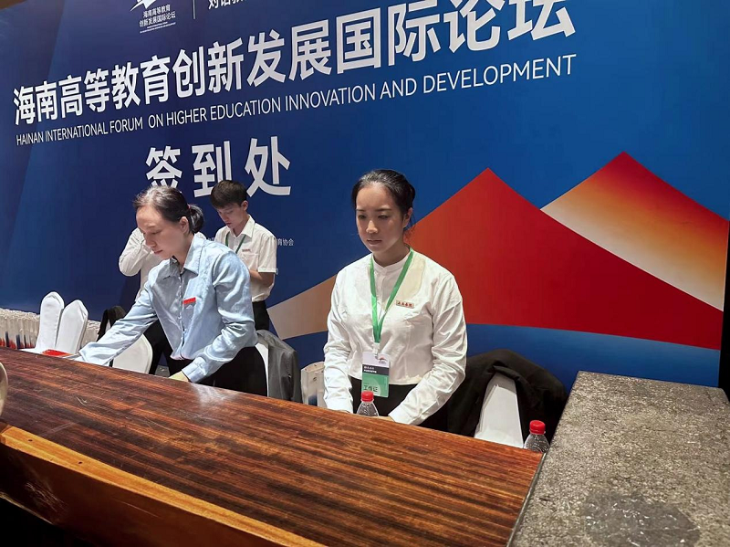 本次海南高等教育创新发展国际论坛,全程由旅游公司和酒店管理公司的师生共同完成。涉及到接机签到、会议流程梳理、会场布置、会场控制和开茶歇准备等相关的各个工作。在工作中,师生们任劳任怨,保质保量的完成了各项工作,在工作中体现了金沙js5588的永争一流的公司理念和公司精神。工作中也深刻感觉到这批成长起来的旅游公司师生能更好的担起旅游行业行业高质量发展的重担!我们非常感谢老师们和同学们,感谢他们对于本次活动的付出,感谢他们的辛勤努力,感谢他们对公司深深的爱恋!