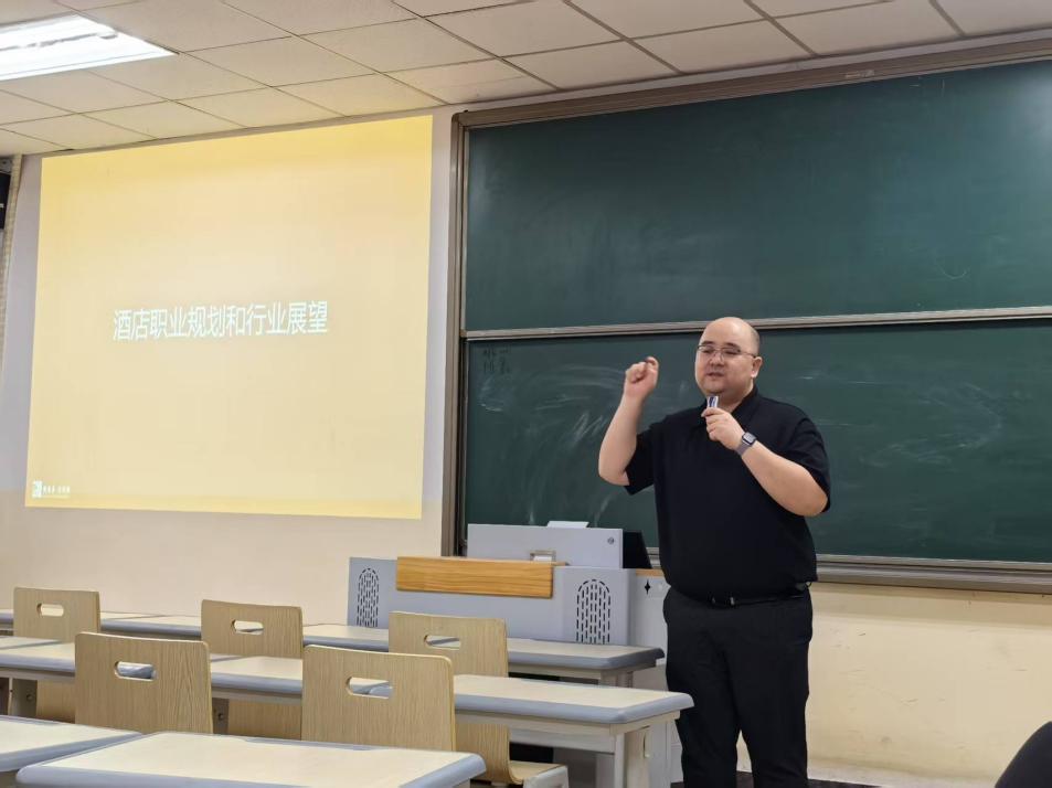 4.肖文锋总监:酒店行业实践的“资深实践者”三亚亚特兰蒂斯酒店人力资源部总监、MTA学术导师肖文锋,从行业一线视角解析“酒店业从功能型服务到体验型生态的转型”。他结合AI智能客需响应系统、可持续发展实践等案例,深挖酒店住宿业的革新路径,同时强调产教融合需聚焦行业痛点,为研究生搭建“学术理论对接实践”的桥梁。