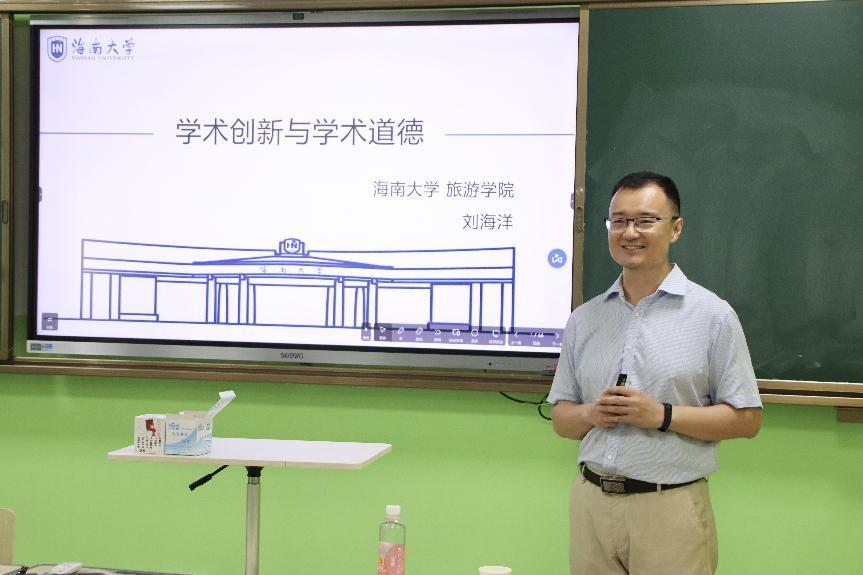 3.刘海洋教授:学术规范与创新的“引路者”海南大学资深教授、博士生导师刘海洋,围绕“学术创新与学术道德”搭建系统理论框架。他从“问题发现—分析—解决”的研究全流程出发,结合学术不端典型案例,强调MTA研究生在产教融合研究中需坚守严谨态度,杜绝数据造假、抄袭等行为;同时提供实证研究的具体方法论,为研究生开展规范学术研究奠定基础。